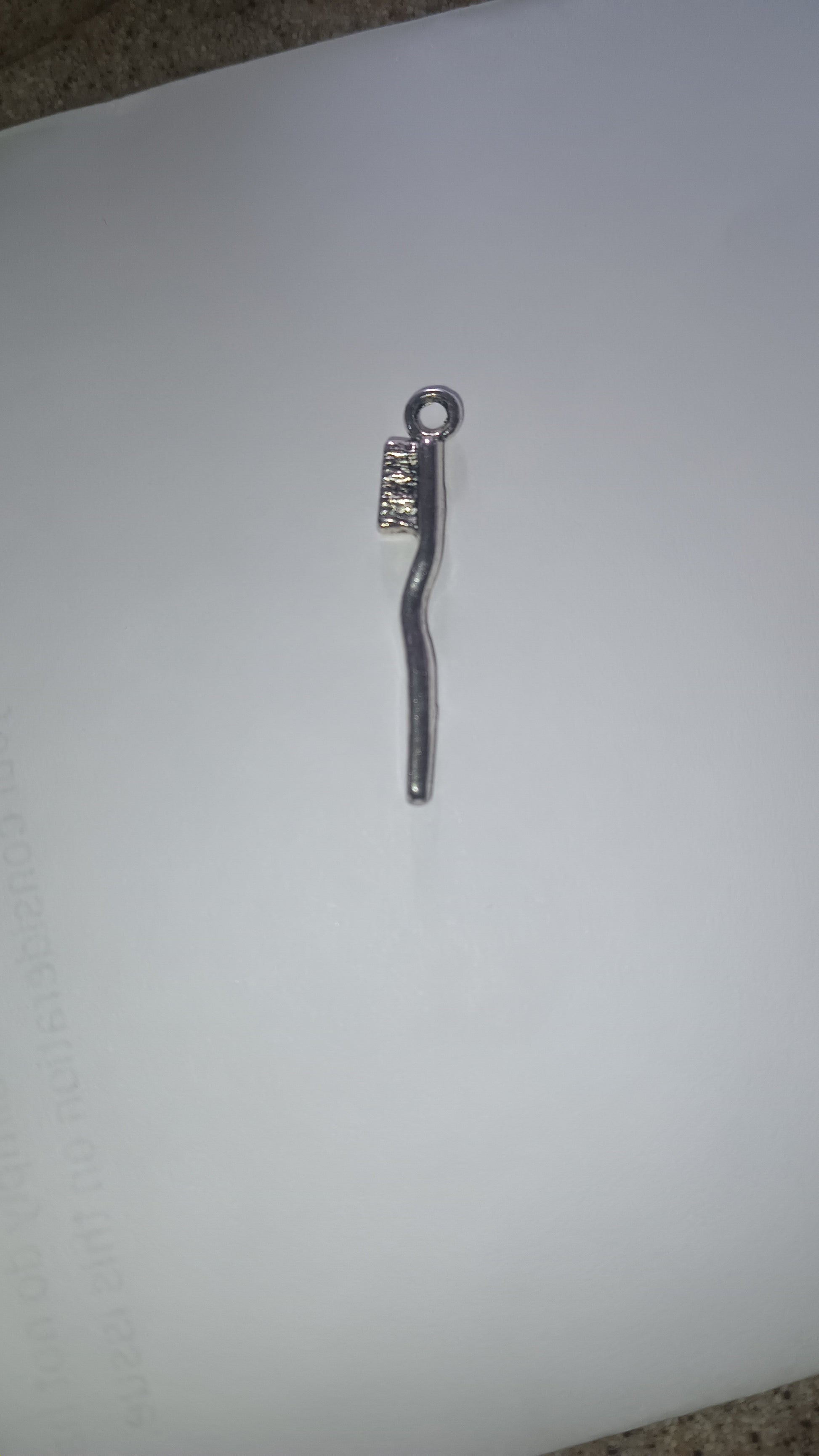 This unique piece showcases a gracefully wavy toothbrush-shaped pendant, complete with delicate bristle detailing that nods to sacred rituals of cleanliness from antiquity. Hung from a fine silver chain, it catches the light with an ethereal shine, blending playful modernity with mystical heritage.